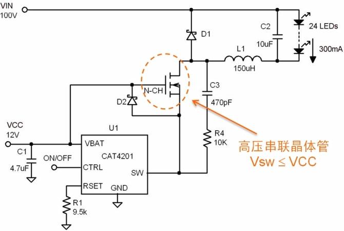 圖3:CAT4201高壓LED驅(qū)動(dòng)器配置。