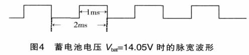 當(dāng)蓄電池的電壓Vbat=14.05V時, 其脈寬波形如圖4所示。