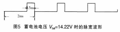 當(dāng)蓄電池的電壓Vbat=14.22V 時,其脈寬波形如圖5所示。