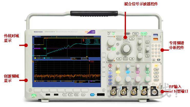泰克8月31日宣布,推出全球首款集示波器、頻譜分析儀、邏輯分析儀和協(xié)議分析儀于一體的混合域示波器MDO4000系列。其主要特點(diǎn)是:可提供捕獲時(shí)間相關(guān)的模擬、數(shù)字和RF信號(hào)的系統(tǒng)級(jí)觀測(cè)。這種時(shí)域和頻域間的關(guān)聯(lián),目前其他廠商還無(wú)法實(shí)現(xiàn)。泰克為此正在申請(qǐng)包括Spectrum Time在內(nèi)的26項(xiàng)專(zhuān)利技術(shù)。