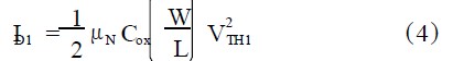 由于本電路中耗盡管閾值電壓為負值,且柵源電壓恒為0,故耗盡型管始終工作在飽和區(qū)。且其電流值恒定為: