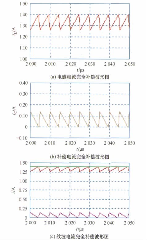 若選擇電路元器件參數(shù)使得k = 1,則iC = - ir,實現(xiàn)了電感紋波電流的全補償。