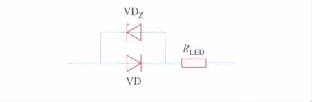 單個LED 仿真模型如圖4 所示,其中VD 為理想二極管,VDZ為理想單向擊穿二極管,RLED為LED等效串聯(lián)阻抗。仿真中設定單向擊穿二極管VDZ兩端電壓為: UD = 3. 0 V,設定等效串聯(lián)阻抗為: RLED = 0. 35 Ω。