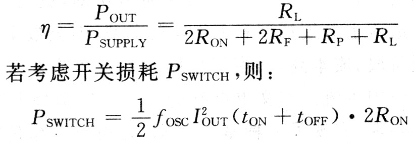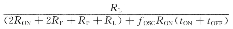 假設(shè)D類功放MOSFET導(dǎo)通電阻為RON,所有其他無源電阻為RP,濾波器電阻為RF,負(fù)載電阻為RL,則不考慮開關(guān)損耗的效率為: