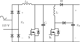 對(duì)于1.5kW功率等級(jí),輸入電流有效值為15A,平均開(kāi)關(guān)電流是13A,峰值電流為22A,需要電流定額至少為30A的開(kāi)關(guān)器件。盡管這個(gè)方案提供了比較簡(jiǎn)單的單級(jí)功率變換,但也存在一些缺陷,如半導(dǎo)體器件承受的電壓應(yīng)力較高、輸出電壓調(diào)節(jié)性能差,輸出電流紋波大。