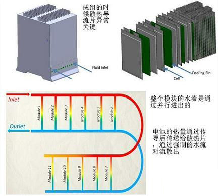 由于液體冷卻只是把熱量從電池組內(nèi)部搬移出來,因此需要解決更多的問題,GM目前關于這塊最為完善的,有興趣可以參見VOLT的一些散熱方面的圖。