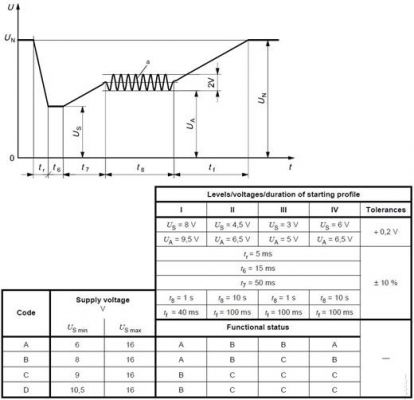 反向電壓:當使用輔助起動裝置時,模塊對蓄電池反向連接的抵御能力。用14V的反向電壓,施加到模塊所有相關的輸入端上持續(xù)60秒的時間。