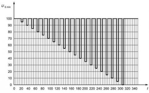 電壓驟降復位性能:檢驗電壓驟降的情況下,模塊的復位性能,適用于具有復位功能的設備。供電電壓以5 %速率從USmin 降到 0.95 USmin,保持5 s,再上升到USmin ,至少保持10 s并進行功能試驗。然后將電壓降至0.9 USmin等,以USmin的5%梯度繼續(xù)進行直到降到0V,然后再將電壓升到USmin。