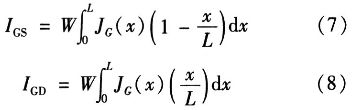 其中,JG是柵極電流密度,L是溝道長度,W是溝道寬度,x是沿溝道的位置(源極處x=0,漏極處x=L),IGS和IGD是柵極電流的柵/源和柵/漏分量。通過線性化柵電流密度與位置的關(guān)系,簡化這些等價噪聲電流分析表達式,所得的總柵極電流噪聲表達式為