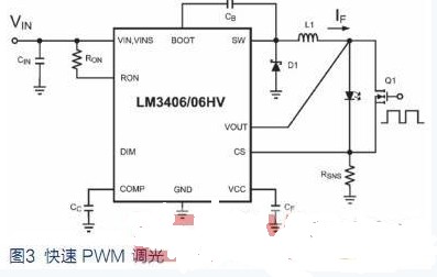 4. 通過外部分流器FET實(shí)現(xiàn)PWM調(diào)光。