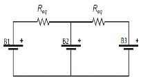 該電路可以等效成如圖3 所示電路,在每兩個電池單體之間連接一個等效電阻,可以推出如等式淵1冤給出的等效阻值。這種方法由于能量逐個傳遞,因此均衡時間較長,可以根據(jù)等式淵1冤,通過改變開關(guān)器件的開關(guān)頻率和電容容值的方法調(diào)節(jié)等效電阻,改變充放電電流。