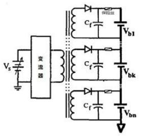 這種充電方式的多繞組變壓器設(shè)計復(fù)雜,而且價格較貴,需要根據(jù)不同的蓄電池單體數(shù)量改變繞組個數(shù),不易于蓄電池組的擴展曰僅能通過給蓄電池單體充電的方式實現(xiàn)均衡。