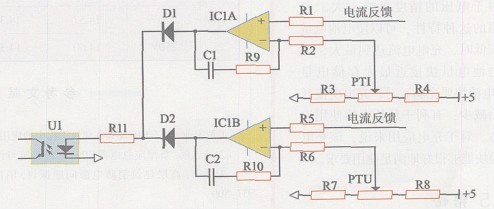 對于本應(yīng)用中, 只要比較反饋控制電路里的兩個PI調(diào)節(jié)器( 圖8中IC1A和IC1B) 的輸出端電壓高低, 就能實現(xiàn)狀態(tài)指示。當IC1A輸出電壓高于IC1B輸出電壓時, 電流反饋起作用, 電路處于充電狀態(tài)。反之, 處于浮充狀態(tài)。