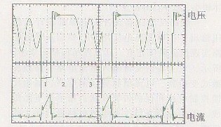 圖5所示的是工作在完全能量轉(zhuǎn)換狀態(tài)下, 開關(guān)管Q1上的電壓與電流波形。在這種工作模式下, 每個開關(guān)周期被分為三個階段( 分別如圖中1、2、3所示) .在階段1, 開關(guān)管導通, 變壓器原邊電流沿斜線上升到峰值電流, 并將能量儲存在高頻變壓器中。
