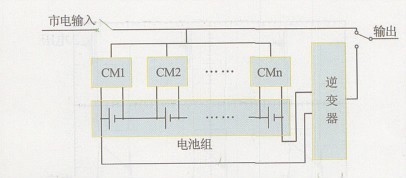 圖2所示是本文提出的一種蓄電池組均衡充電模式結(jié)構(gòu)示意圖, 圖中CM表示充電器或充電模塊。在這種均衡式充電模式中, 對電池組的每一節(jié)電池都單獨配置一個充電模塊, 它是均衡式充電裝置的核心。在應(yīng)急電源中, 當處于非應(yīng)急狀態(tài)運行時, 應(yīng)急電源的輸出通過開關(guān)直接由市電供給, 這時, 逆變器不工作, 各充電模塊給各節(jié)相應(yīng)的電池進行充電或浮充電。當應(yīng)急電源處于應(yīng)急工作狀態(tài)時, 由電池組給逆變器供電, 通過逆變器輸出應(yīng)急逆變交流電源。這時, 由于各充電模塊無交流輸入, 處于不工作狀態(tài), 不影響蓄電池組的放電工作狀態(tài)。