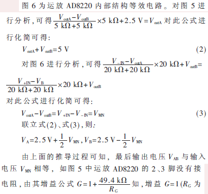 圖5為電壓輸出采集電路,M、N兩點間的電壓接運放AD8220,再經(jīng)運放OP1177處理后,得到輸出電壓VoutA、VoutB,此電壓最后接色譜工作站或接AD轉(zhuǎn)換器和單片機進行處理,可檢測物質(zhì)的成分和含量。