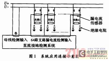 直流供電系統(tǒng)由于長時間在惡劣環(huán)境中工作,線路、連接器、接線端子、刀閘等會產(chǎn)生老化,從而導(dǎo)致正負(fù)母線的絕緣性能降低,對地絕緣電阻減小,產(chǎn)生漏電電流。漏電流的產(chǎn)生將會引起流入和流出用電負(fù)載的電流不一致(部分電流經(jīng)過絕緣電阻流入大地)。非接觸式直流漏電流傳感器,能夠把流入和流出傳感器的直流電流差感應(yīng)成直流電壓。這樣在每個用電負(fù)載的輸入和輸出線路上安裝一個非接觸式直流漏電流傳感器,就能檢測出每個用電負(fù)載或者線路的漏電流。直流接地檢測系統(tǒng)則根據(jù)漏電流傳感器的感應(yīng)電壓求出漏電流的大小。然后通過“平衡-不平衡法”檢測出正負(fù)母線對地電壓,根據(jù)母線電壓和漏電流求出各個支路絕緣電阻的大小。