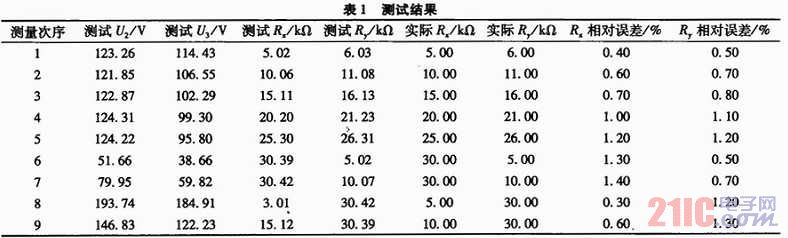 由1~5組可知,當(dāng)絕緣電阻大時,測試相對誤差略有增大,這是因?yàn)椴蓸覣/D的輸入阻抗較小,因此當(dāng)測試電阻較大時造成誤差相對大些。另外,當(dāng)負(fù)母線的絕緣電阻<30 kΩ、負(fù)母線絕緣電阻正常時,前者的測量效果差些。因?yàn)榇藭r實(shí)際測得的電壓U2和U3都較小,A/D采樣的相對誤差大一些,所以電阻的誤差也大一些。不過遠(yuǎn)好于平衡橋法無法發(fā)現(xiàn)兩點(diǎn)接地的情況,可以正卻發(fā)現(xiàn)接地。絕緣檢測的環(huán)境下,只要絕緣電阻>20 kΩ即認(rèn)為絕緣良好,因此對于絕緣檢測的應(yīng)用環(huán)境,本系統(tǒng)能夠比較精確的測試各路的絕緣電阻,完全滿足應(yīng)用環(huán)境的需要。