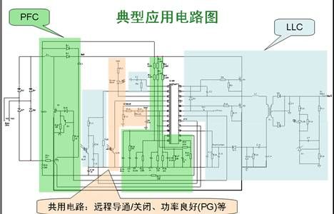 圖1是采用NCP1910的典型應(yīng)用電路圖共用電路,它包括遠(yuǎn)程PFC段、LLC段,以及實現(xiàn)導(dǎo)通/關(guān)閉、功率良好(PG)等的共用電路。