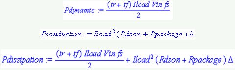 其中:tr和tf =上升和下降時間;Vin =輸入電壓;ILoad =負載電流;Fs =開關(guān)頻率;RDS(ON) = MOSFET導通電阻;ΔPWM = 占空周期;Rpackage =封裝阻抗;