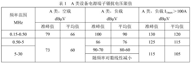 要想讓逆變焊機(jī)內(nèi)部產(chǎn)生的電磁騷擾徹底消除是不可能的, 我們只要使焊機(jī)符合 GB15579.10 標(biāo)準(zhǔn)的要求就可以了,電源端子騷擾電壓的限值見(jiàn)表 1。IGBT 逆變焊機(jī)通過(guò)空載試驗(yàn)一般都沒(méi)有問(wèn)題,焊機(jī)負(fù)載狀態(tài)(I1max≤100A)的騷擾電壓限值見(jiàn)表 1 的 A類(lèi)。