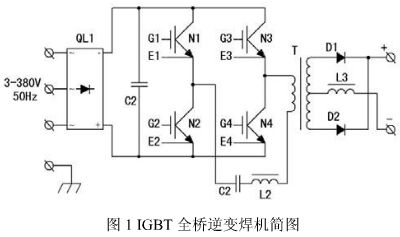 圖 1 是全橋 IGBT 逆變焊機(jī)主電路簡(jiǎn)圖,由圖 1 可見(jiàn),三相 380V電源進(jìn)入焊機(jī)首先要經(jīng)過(guò)三相整流橋QL1 整流和 C2 濾波,濾波電容器的等效容量一般在 50~1000µf 之間,在采用大電容器濾波的整流濾波電路中,整流二極管導(dǎo)通時(shí)間較短,濾波電容充電電流瞬時(shí)峰值大,電流波形為近似尖脈沖,使 50Hz 正弦電流波形發(fā)生畸變,產(chǎn)生諧波電流。