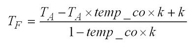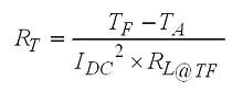 這里要注意的一件事情是電感器的功耗是其線圈電阻的函數(shù),后者會(huì)隨著溫度發(fā)生變化。因此,需要考慮計(jì)算電感器在給定RT的TF。將RT的等式插入電感電阻與溫度等式并求解TF可以得出: