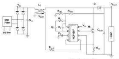 圖2 NCP1607驅(qū)動(dòng)的應(yīng)用段典型應(yīng)用示意圖