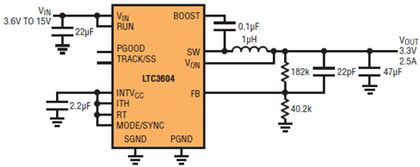 圖 1:從寬輸入范圍到 3.3V/2.5A 的應(yīng)用