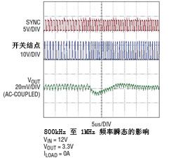 圖 3:同步開關(guān)頻率可以隨時移動,而且 VOUT 的變化很小
