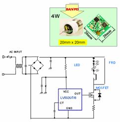 該系列是安森美半導體成員公司三洋半導體的LED控制器--LV5026M、LV5028TT和LV5027T,其中LV5026M具有TRIAC調(diào)光、PWM調(diào)光、模擬調(diào)光和功率因數(shù)校正功能;LV5028TT只有TRIAC調(diào)光和功率因數(shù)校正功能。LV5026/7/8 TRIAC調(diào)光電路如圖3所示。