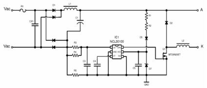 圖7:NCL30000高功率因數(shù)降壓方案應用電路。