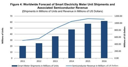 - 2016年全球智能電表出貨量將增長到6200萬個