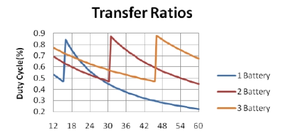 圖 4:多個電池降壓和升壓模式之間的傳遞比