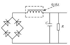 即功率因數(shù)校正( Pow er Factor Correct ion, PFC)是指有效功率與總耗電量( 視在功率) 之間的關(guān)系,也就是有效功率除以總耗電量( 視在功率) 的比值。無源PFC 是指不使用晶體管等一些有源器件組成的校正電路,一般情況下由二極管、電阻、電容和電感等無源器材組成。本文的PFC 主要是在整流橋堆和濾波電容之間加1 個(gè)電感, 具體原理如圖3 所示,利用電感上的電流不能突變的特性來平滑電容充電強(qiáng)脈沖的波動(dòng),改善電路中電流的畸變,并且利用電感上的電壓超前于電流這一特性來補(bǔ)償濾波電容電流超前電壓的特性, 使功率因數(shù)和電磁干擾都得以改善。