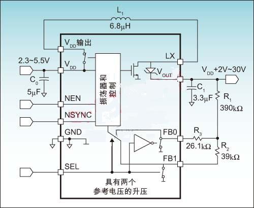 如上所述,當(dāng)OLED工作在暗的模式時可以通過降低輸出電壓顯著地節(jié)省功耗。因此為OLED電源選擇的最佳電源芯片應(yīng)包含能夠提供這一功能的電路。采用兩條獨立的反饋路徑就可實現(xiàn)這一功能,而且這兩條反饋路徑可以通過簡單的邏輯輸入進(jìn)行選擇。因此通過這種方法就可簡單地實現(xiàn)PMOLED中使用的亮→暗→關(guān)節(jié)電技術(shù)。