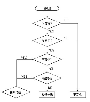 印刷機整體的電氣設(shè)計還是比較復雜的,對時間的要求也很嚴格。在機器的很多地方裝有接近開關(guān),用來檢測不同的時間點。在印刷過程中,走紙的好壞是影響機器質(zhì)量的一個重要環(huán)節(jié)。所謂紙走的好壞,指的是無歪張,雙張等現(xiàn)象,如果有歪張,雙張現(xiàn)象,在高速情況下,就會將走壞的紙,卷入機器內(nèi),從而破壞膠皮,給用戶帶來很大損失。此過程流程如下: