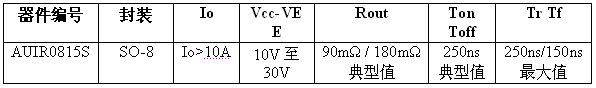 全球功率半導(dǎo)體和管理方案領(lǐng)導(dǎo)廠商國(guó)際整流器公司 (International Rectifier,簡(jiǎn)稱IR) 近日推出車(chē)用IC ── AUIR0815S,具備超過(guò)10 A 的高輸出電流,能夠驅(qū)動(dòng)逆變器級(jí)的大型 IGBT 和 MOSFET,適用于混合動(dòng)力汽車(chē)和電動(dòng)汽車(chē)中的動(dòng)力系統(tǒng)。
