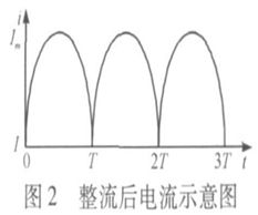 從上式可以看出, I 除了一直流分量之外, 還包含一系列的高頻諧波的交流分量(如圖2 所示波形)。這樣不但影響了電源線上的電流, 并使電流發(fā)生畸變, 同時也產(chǎn)生射頻干擾。