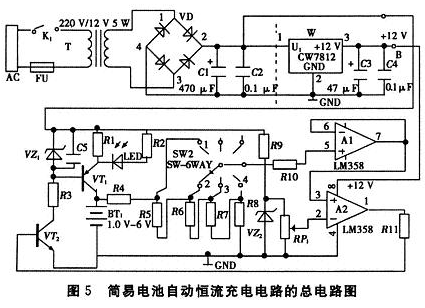 2 簡(jiǎn)易充電器總電路原理圖及元器件清單