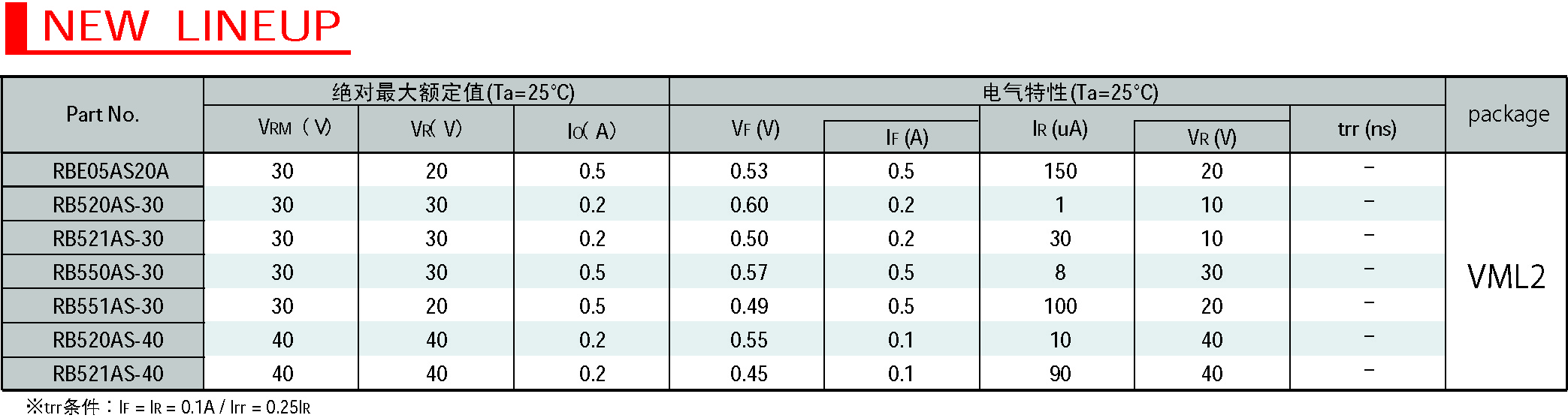 將VML2封裝亦擴展應用到肖特基勢壘二極管產(chǎn)品。根據(jù)不同用途共推出了七款系列產(chǎn)品。