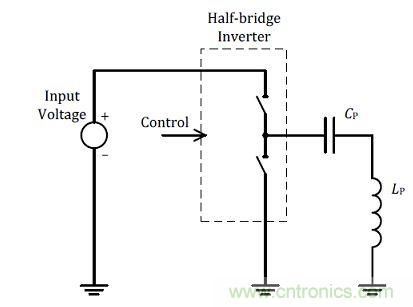 另外一個(gè)改變輸出功率的方式為改變發(fā)射端上的驅(qū)動(dòng)電壓,參考圖(二)所示,在同一線圈與電容的諧振組合中,當(dāng)于驅(qū)動(dòng)發(fā)射線圈上的開(kāi)關(guān)電壓大小即直接改變的輸出功率的大小,在此將這個(gè)方式定義為變壓式功率調(diào)整。