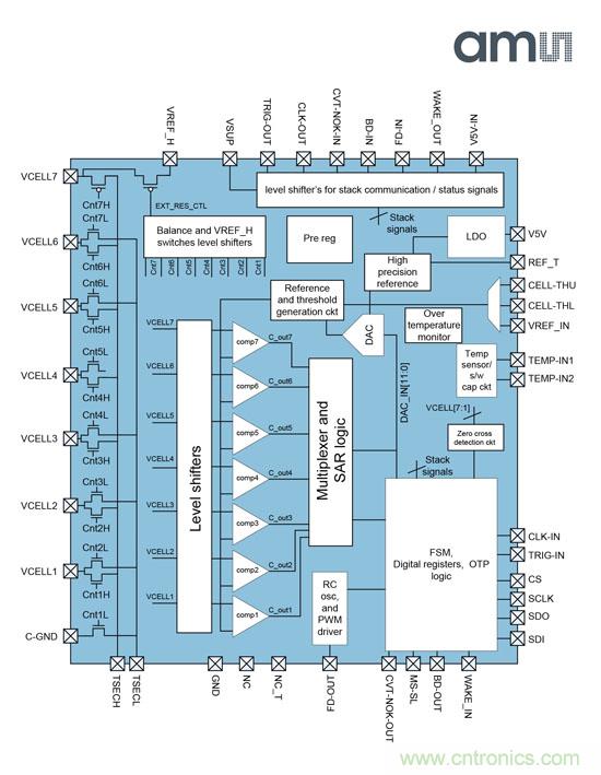AS8506電池監(jiān)測IC現(xiàn)已推出樣品。奧地利微電子同時也提供非汽車用芯片版本AS8506C。