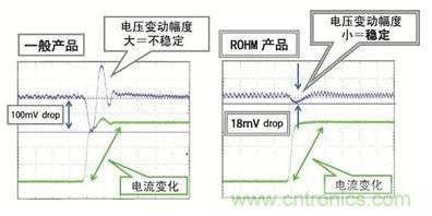 圖4:負(fù)載電流急劇變動也可用最小限的電壓降實(shí)現(xiàn)高速負(fù)載瞬態(tài)響應(yīng)