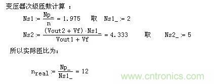注意合理匝數(shù)取整。這個(gè)結(jié)合自己項(xiàng)目實(shí)際情況,取整后,變比會(huì)有所變化,Dmax也會(huì)有所變化,所以需要用取整后的參數(shù)進(jìn)行核算Bmax。