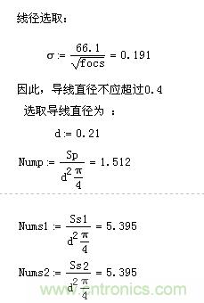 對于一定的電流,需要的導(dǎo)線截面積是一定的,在實(shí)際選取線徑的時(shí)候,要結(jié)合實(shí)際所選的骨架幾何尺寸,做合適的組合,盡量不要散繞,對于某一層繞組,單根線太散的話,可以選取兩根或者幾根細(xì)線進(jìn)行并饒,只要繞組的總截面積在計(jì)算值左右就好。