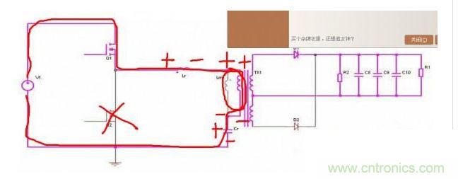 上管開通,注意諧振電感、勵磁電感、諧振電容的正負(fù)