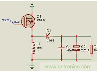 占空比為D的PWM波控制開關(guān)管Q1,從而達(dá)到這樣的一個效果,交替導(dǎo)通或截止,再經(jīng)L和C濾波器在負(fù)載R上得到穩(wěn)定直流輸出電壓Uo。本電路屬于降壓型電路,題目要求的30--36V 的輸出電壓是實(shí)現(xiàn)不了的。