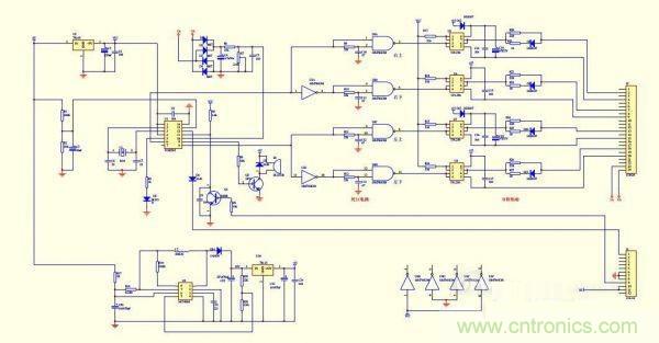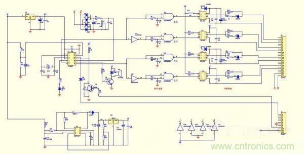 SPWM的核心部分采用了TDS2285單片機芯片。U3、U4組成時序和死區(qū)電路,末級輸出用了4個250光藕,H橋的二個上管用了自舉式供電方式,這樣做的目的是簡化電路,可以不用隔離電源。