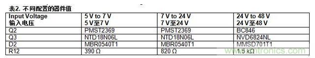 表2總結(jié)了針對不同輸入電壓配置而選擇的替代器件。